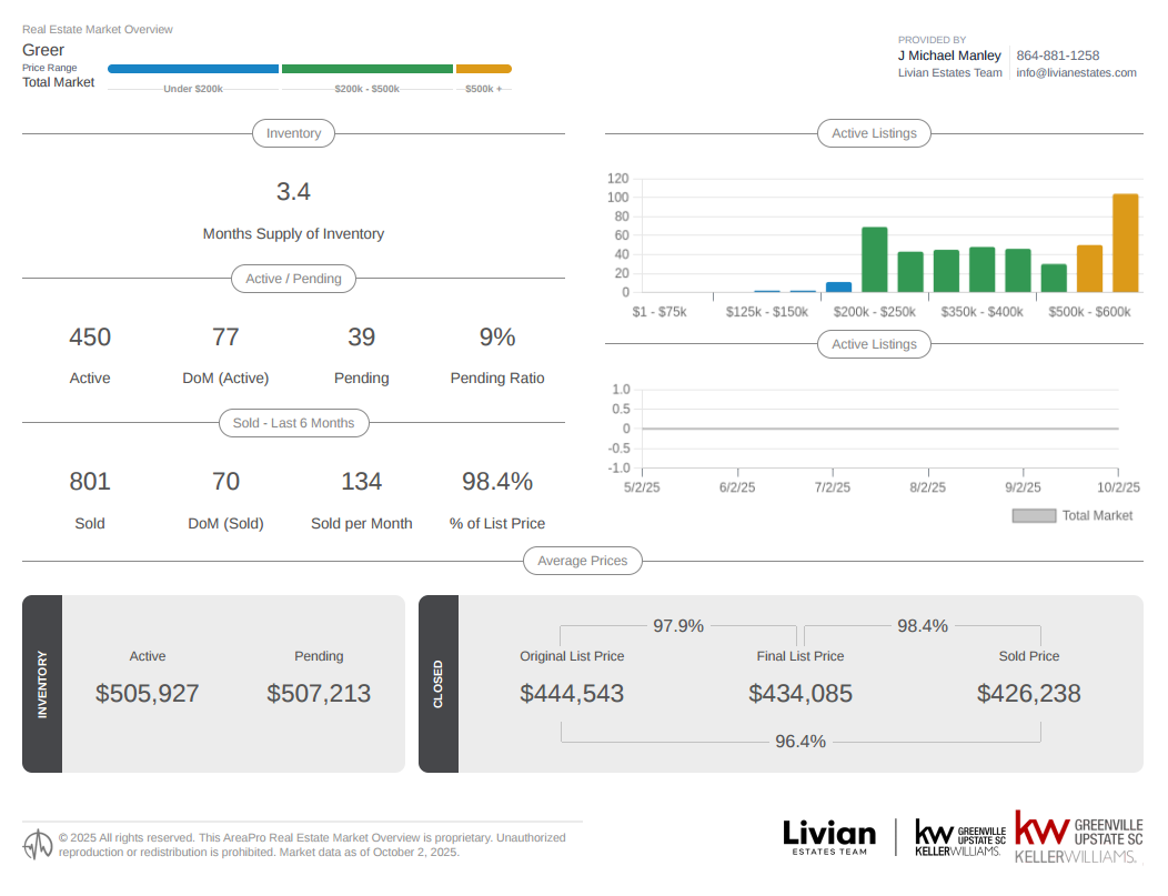 Whether you’re buying or selling in Greer, preparation and realistic expectations are essential. For a personalized strategy, reach out to the Livian Estates Team at KW Greenville Upstate SC—we’re here to help you succeed in today’s market!